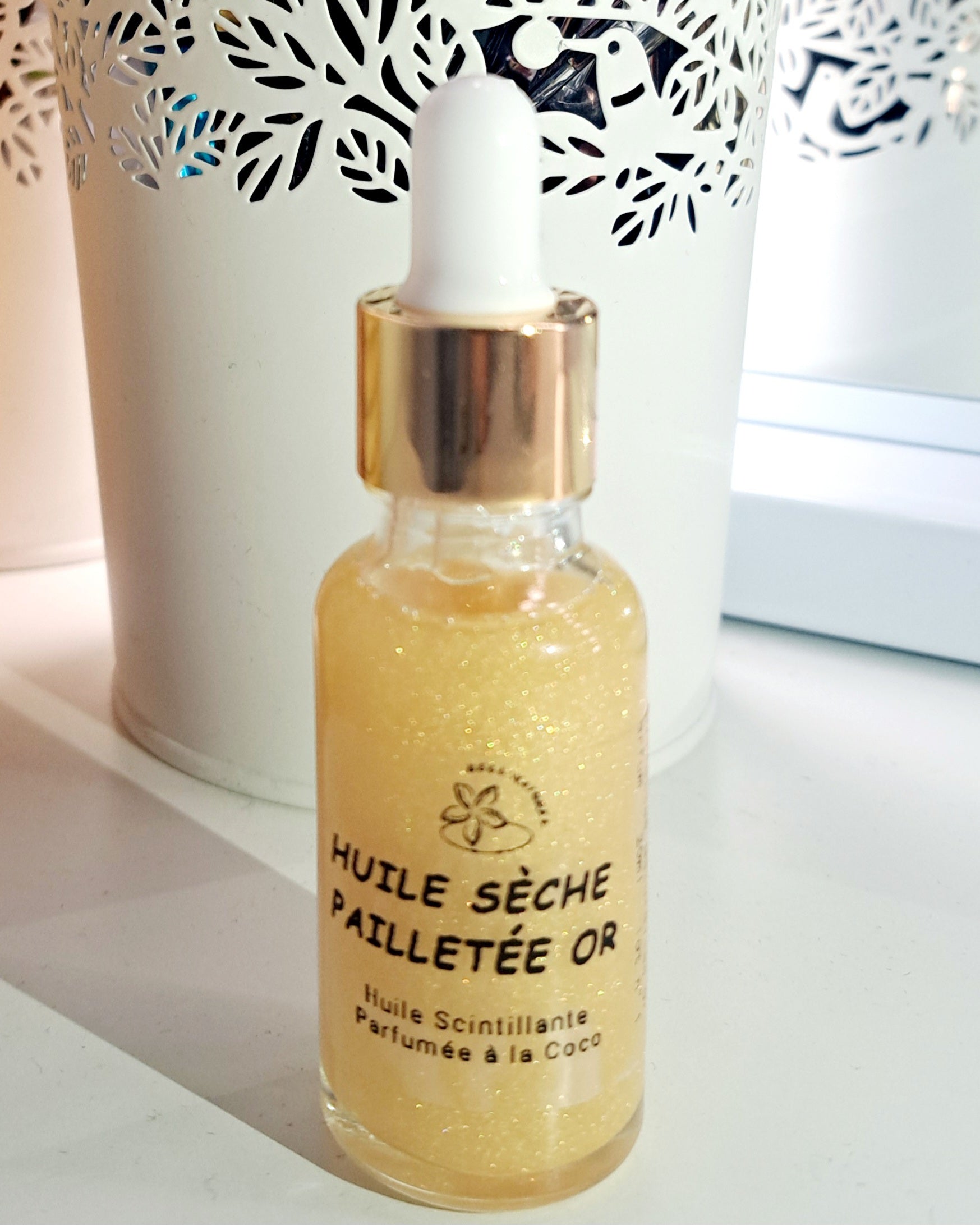 Verschönern Sie Ihre Haut mit unserem Trockenöl mit Kokos-Gold-Glitzer. Die Formel mit natürlichem Glimmerglitzer spendet tiefenwirksam Feuchtigkeit, lässt Ihren Teint aufhellen und hüllt Sie in einen betörenden Sonnenduft. Dieses in Handarbeit im Süden Frankreichs hergestellte Öl ist ein wahres Konzentrat aus Sonnenschein und Wohlbefinden.