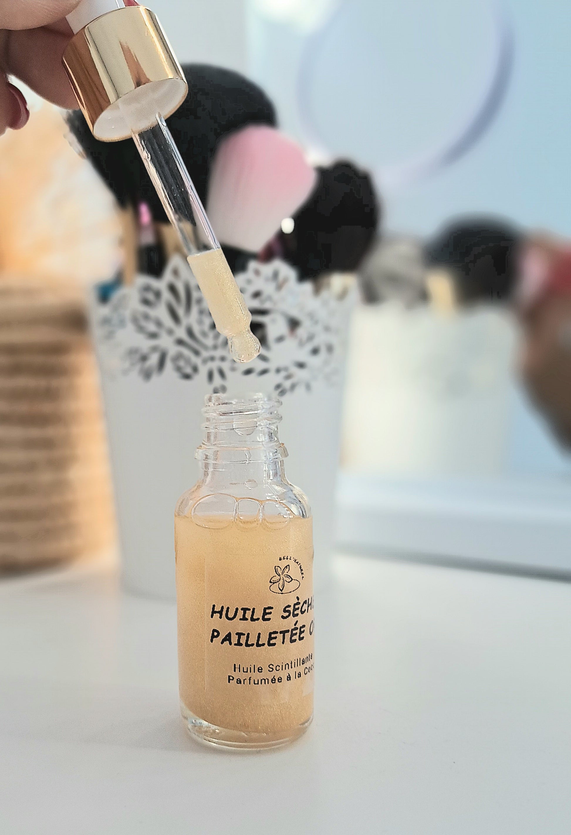 Trockenöl mit Goldglitter