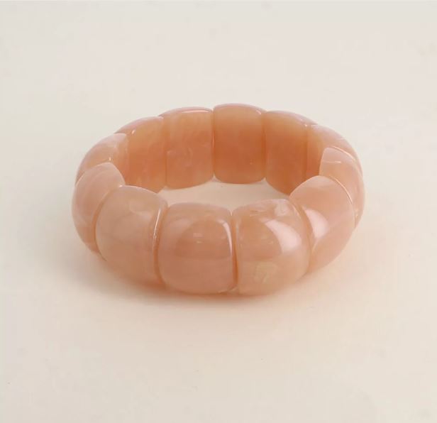 Bracelet élastique type manchette composé de grandes pièces en acétate.